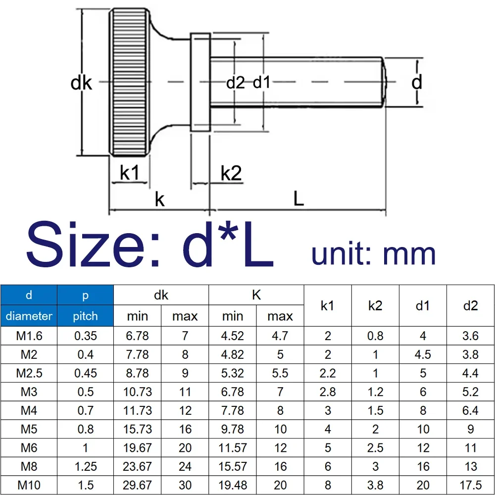 גדלים זמינים: M2, M2.5, M3, M4, M5, M6, M8, M10