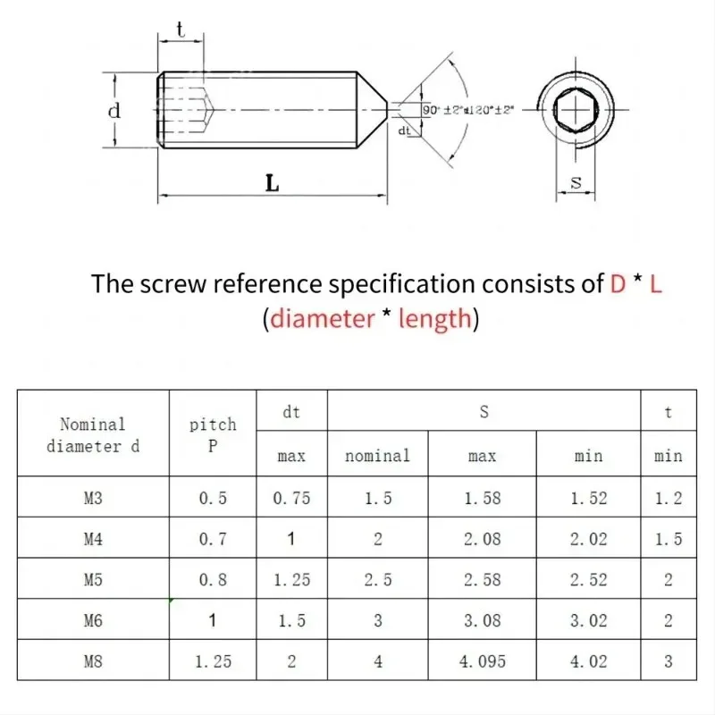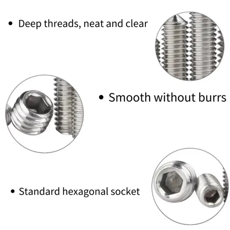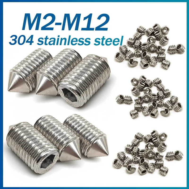 שם מוצר: 10 יחידות ברגי שקע משושה קונוס נקודת חרוט בורג גראב M2 M2.5 M3 M4 M5 M6 M8 M10 M12 304 נירוסטה ראש אלן בורג שקע משושה