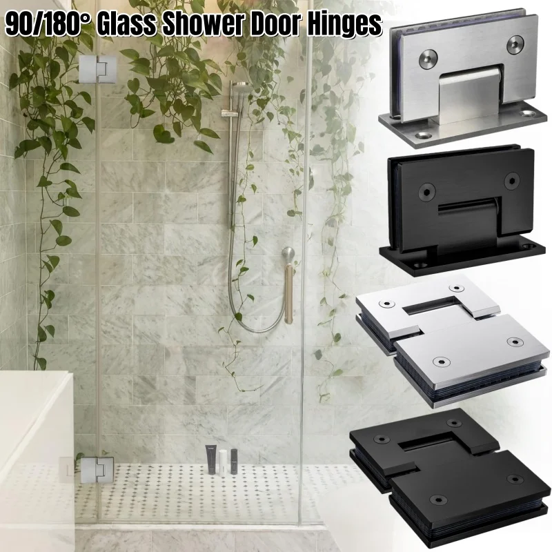 צירי זכוכית SUS304 מפלדת אל-חלד 90°/180°, תושבת זכוכית עמידה, קליפס תמיכה לדלת מקלחת לחדר וחומץ, לקיר / זכוכית לזכוכית