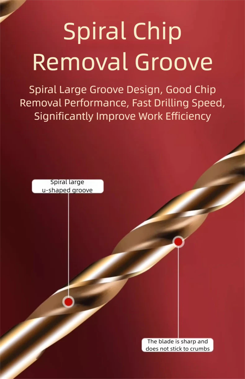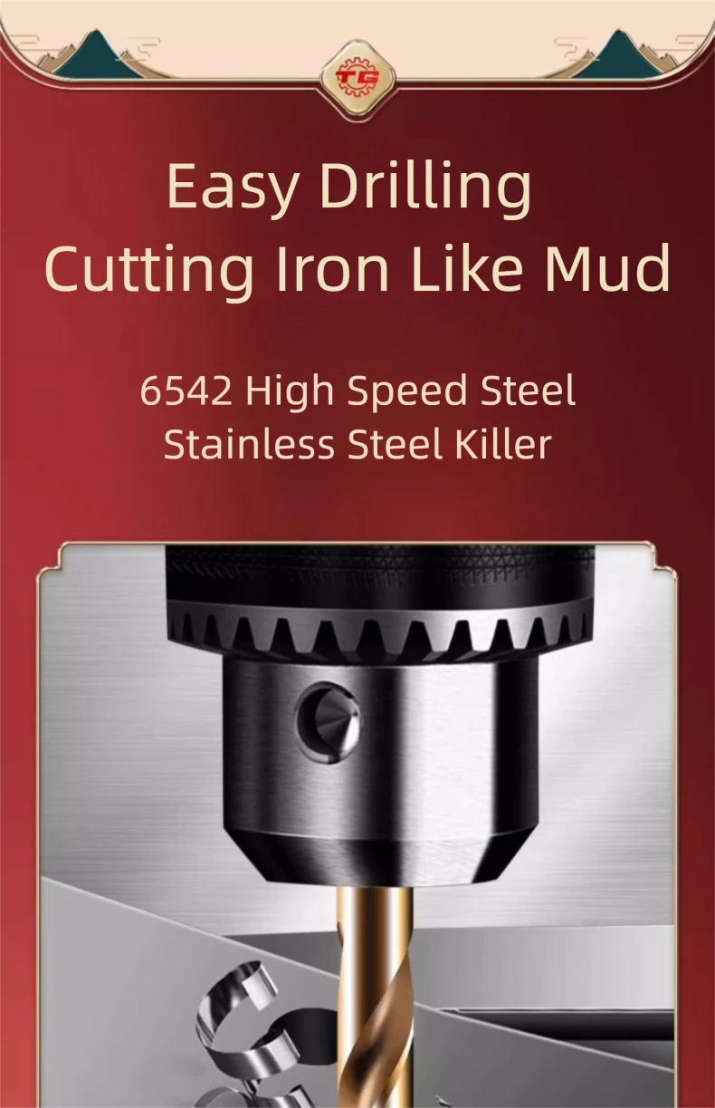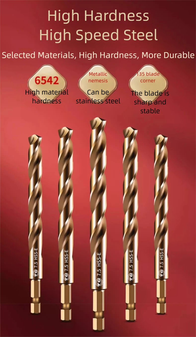 מקדחת טוויסט משושה 6542 מפלדת אל-חלד TG עם ידית לעיבוד מתכת, קידוח מתכת 1.5-13 מ"מ