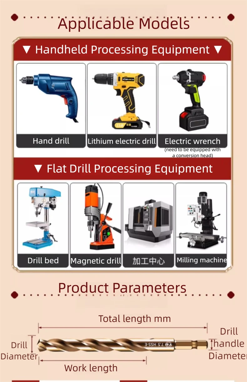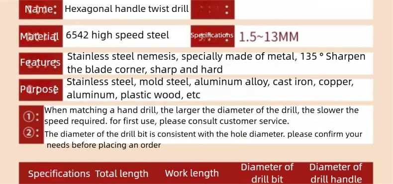 סוג : מקדח טוויסט משושה, מקדח טוויסט